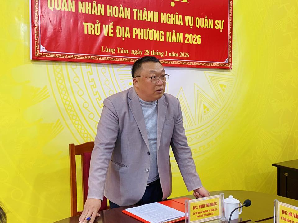 Chiều ngày 28/01, UBND xã Lùng Tám tổ chức gặp mặt quân nhân hoàn thành nghĩa vụ quân sự xuất ngũ năm 2026 trở về địa phương. Dự hội nghị có đồng chí Hà Văn Chung - Bí thư Đảng ủy, Chủ tịch HĐND xã; Thường trực HĐND - UBND; Lãnh đạo các ban, ngành, đoàn thể xã.